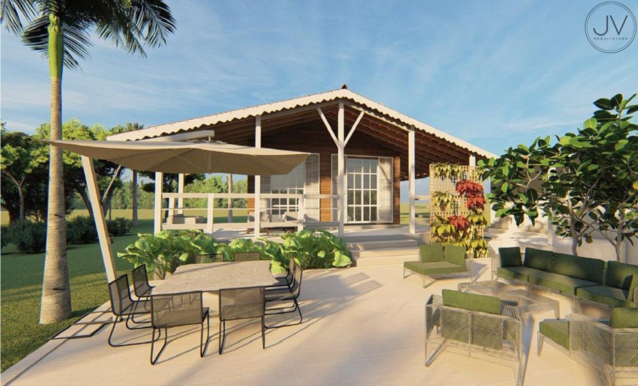 PROJETO_14_CJS “Casa com área externa e fachada que destacam a personalidade do projeto, oferecendo um ambiente agradável para convivência ao ar livre.”— Imagens 3D autoral